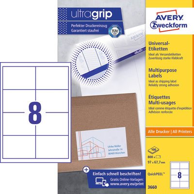 Avery Zweckform Adressetiketten 3660 auf A4-Blättern eignen sich z.B. zur Beschriftung oder für die Dt. Post Internetmarke.