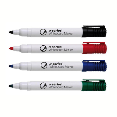 a-series Boardmarker AS1078 im praktischen 4er Etui bringen Inhalte schnell und einfach auf Whiteboards und Schreibtafeln und sind selbst von geschlossenen Oberflächen wie Glas und Porzellan trocken oder feucht, rückstandsfrei abwischbar.