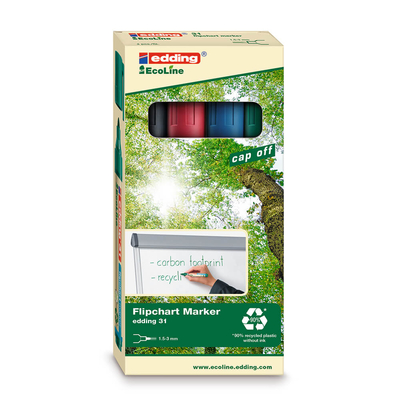 Edding 31/4S EcoLine - nachhaltiger Flipchartmarker speziell entwickelt zum Schreiben und Markieren auf Flipchartpapier, Moderationspapier und -karten sowie andere Papierbögen.