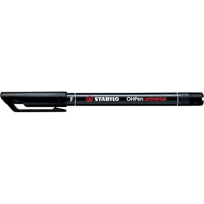 Schwan Stabilo Folienschreiber OHPen universal 842F zum permanenten Beschriften auf fast allen glatten Flächen. Strichbreite: ca. 0,7mm/F, Spitze: Rundspitze, Tinte: wasserfest. Ausführung: ventilierte Kappe, rutschfeste Griffzone und praktischer Clip, bis zu 72 Stunden Austrockenschutz ohne Kappe, Kappe am Stiftende aufsteckbar.