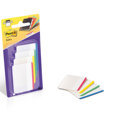 Post-it Index Strong flache Haftmarker 686-F1EU mit weißem Schriftfeld sind ideal für Ordner und als Karteireiter- individuelle Register lassen sich schnell erstellen. Maße: 50,8x38mm, Material: Polyester, Inhalt: Pack 4 Farben mit je 6 Haftstreifen in den Farben blau, rot, grün, gelb. Ausführung: signalstark, extra stark, extra lang, selbstklebend, rückstandsfrei wiederablösbar, beschriftbar.