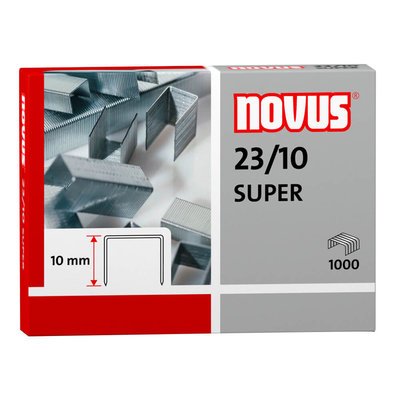 Novus Heftklammern 042-0531 für die optomale Heftleistung bei Blockheftgeräten. Geeignet für: Papierstapel bis 70 Blatt Standardpapier (80 g/m²). Heftklammerntyp: 23/10 SUPER, Schenkellänge: 10mm, Material: Stahl (verzinkt). Inhalt je Packung: 1.000 Klammern. Ausführung: Stahldraht von höchster Festigkeit.