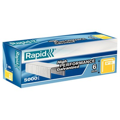 Rapid Präzisions-Feindraht-Heftklammern Nr. 13 aus verzinktem Hochleistungsstahl. 6mm Schenkellänge. Für Rapid Tacker MS610, R13 (Best.-Nr. 2044), R83, R23, R30, R33, MS813, R19, ESN113, R213 zur optimalen Heftleistung.