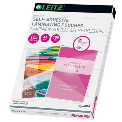 Leitz iLAM Heißlaminiertaschen 16925 mit selbstklebender Rückseite zum direkten Anbringen Ihrer laminierten Vorlagen auf glatten Oberflächen ohne störenden Klebefilm. Perfekte Versiegelung garantiert Schutz vor Schmutz, Flüssigkeiten und Feuchtigkeit für Ihre Hinweisschilder oder Bekanntmachungen. Für Format: A4, Maße: 216x303mm, Stärke: 2 x 125 Micron, Oberflächenbeschaffenheit: glänzend. Ausführung: abgerundete Ecken, haftet sicher auf allen glatten Oberflächen, kann einfach wieder entfernt werden und woanders hingeklebt werden. Perfekt geeignet für alle Laminiergeräte.