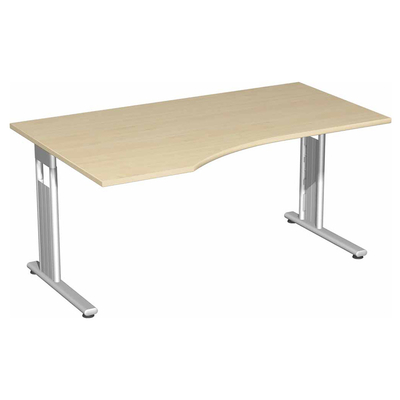 Geramöbel Schreibtische C-Fuß Flex S-618306 überzeugen mit ihrem schlichten Design, hoher Stabilität und ein gutes Preis-Leistungsverhältnis. Form: Freiform links, Maße: 1800x1000mm (BxT), Arbeitshöhe: 72cm, Höhenverstellung: nicht höhenverstellbar, Tischplatte: beidseitig melaminharzbeschichtete Spanplatte 25mm stark nach DIN 68765 mit abgerundeter Kunststoffkante 3mm dick, Gestell: C-Fuß-Gestell silber, mit 2 Säulen für hohe Stabilität, Justierfüße, Seitenblende im Lieferumfang enthalten, Elektrifizierung: Kabelkanal in der Traverse integriert (zur sauberen Verlegung von Kabeln und Steckdosen). Tischplatte in folgenden Ausführungen erhältlich: Ahorn (S-618306-AS), Buche (S-618306-BS), Lichtgrau (S-618306-LS) und Weiß (S-618306-WS). Optional auf Anfrage: Knieraumblende aus Metall mit Lochraster oder Kabelspirale für Bodenzuführung. Lieferzustand: Ware zerlegt (einfache Montage).