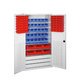 110x195x53,5cm (BxHxT), 9 Böden, 92 Sichtlagerkästen, 10 Einhängeschienen, 2 Flügeltüren