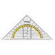 Westcott Zeichendreiecke E-10130 BP als eine Kombination aus Dreieck, Maßstab, Parallel-Lineal und Winkelmesser. Hypothenuse: 14cm, Material: Kunststoff, Farbe: glasklar, Griff: nein. Ausführung: Facette, farbig hinterlegte, gegenläufige Gradskala, Winkelskala 180 Grad / 1 Grad, Tuschenoppen